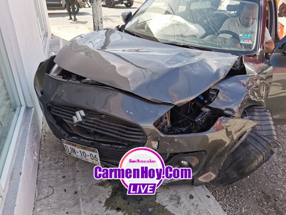 Suzuki Swift con matrícula de circulación DJN-10-06 con registro en el Estado de Campeche mismo que venían aparente preferencia sobre la calle 35, ambas unidades luego del percance terminaron por su lado el vehículo presuntamente responsable terminó proyectado de frente contra un poste detrás que el vehículo Suzuki afectado término contra la pared de una farmacia ubicada en esquina.