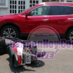Con fuertes dolores en la pierna derecha y mano izquierda fue como terminó la guiadora de una motocicleta tipo scooter Italika DS150 con matrícula de circulación WGP4W registró en el Estado de Campeche luego de estrellarse contra la puerta de una camioneta de lujo en la Colonia Héctor Pérez Martínez.