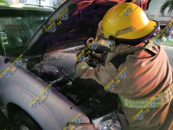 Personal de bomberos locales, lograron controlar el incendio pero desafortunadamente lo daños generados en el área del motor fueron de mayor cuantía, el propietario manifestó que solicitaría una grúa para remolcar su unidad a su domicilio ya que esta no encendía mas.