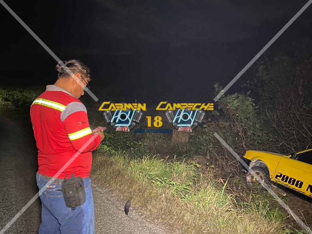 Los hechos se registraron cerca de las 23:50 horas cuando el conductor de un automóvil Nissan Tsuru, color amarillo, con placas de circulación DJZ-39-48 del Estado de Campeche, circulaba a exceso de velocidad sobre la carretera federal en el tramo carretero Carmen – Isla Aguada presuntamente al llegar a la altura del kilómetro 18 + 400 se quedó dormido al volante pues circulaba bajo los influjos del alcohol provocando que perdiera el control y saliera de la cinta asfáltica quedando al interior de una zanja.
