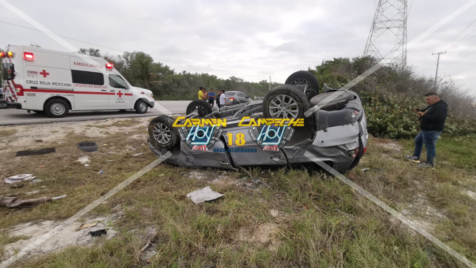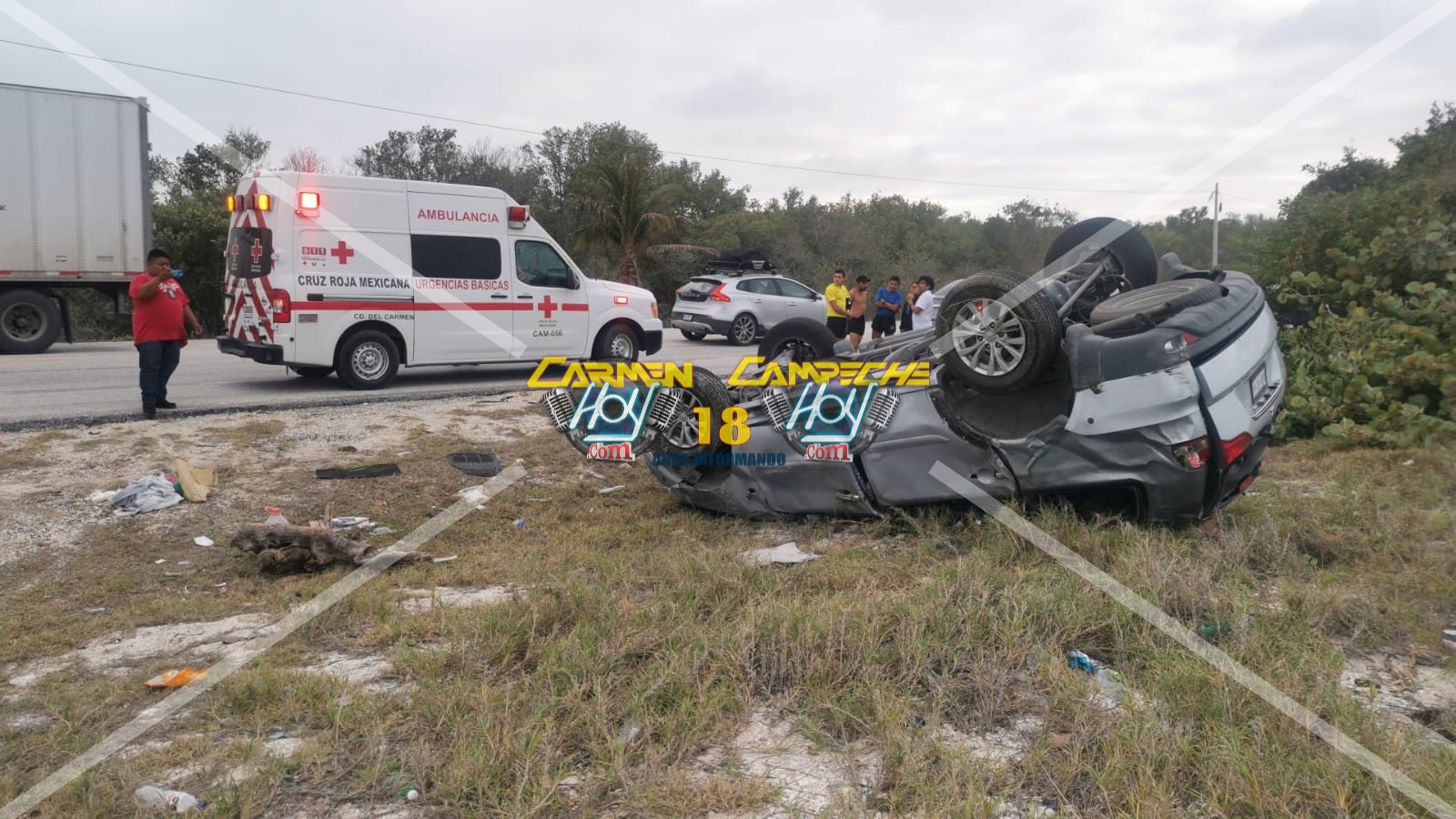Una pareja de esposos lesionados tras volcar la camioneta marca Montero en el kilómetro 32 de la carretera Carmen Puerto Real.