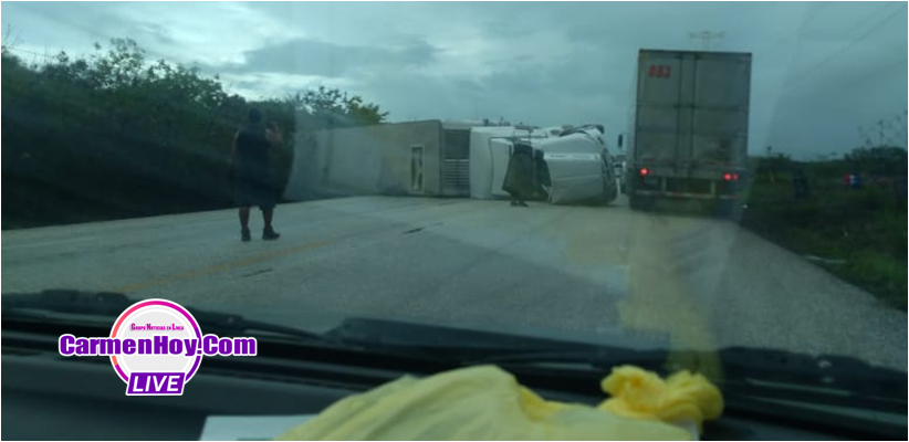 Se voltea tráiler en el tramo carretero Isla Aguada – Sabancuy
