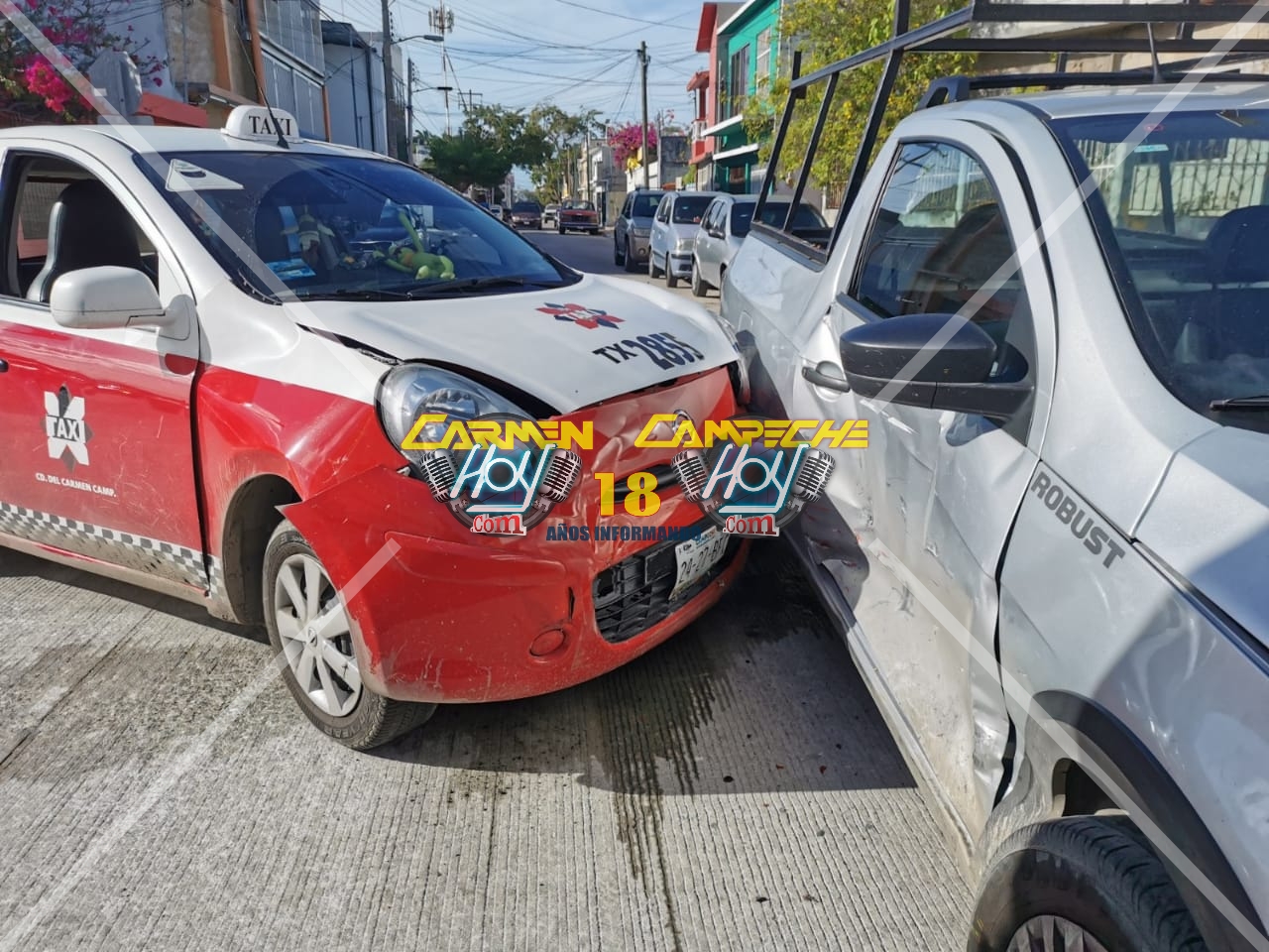 El percance automovilístico ocurrió alrededor de las 15:15 horas de la tarde, sobre la calle 35-A esquina con 60 de la demarcación antes mencionada, lugar donde según la información recabada y la posición final de las unidades, el chofer del vehículo Nissan March, marcado con el número económico 2856, matrícula de circulación 24-27-BFC del estado de Campeche y afiliado al Sindicato Único de Trabajadores del Volante SUTV circulaba en aparente preferencia sobre la calle 35-A con dirección a la colonia San Agustín del Palmar, desafortunadamente al llegar al cruce con la calle 60, el conductor de una camioneta Volkswagen Robust, color plata con matrícula de circulación VR-2101-B del estado de tabasco, al no respetar su preferencia, cerro el paso al taxi, cuyo chofer no logró frenar a tiempo e impacto contra el costado lateral derecho de la unidad particular.