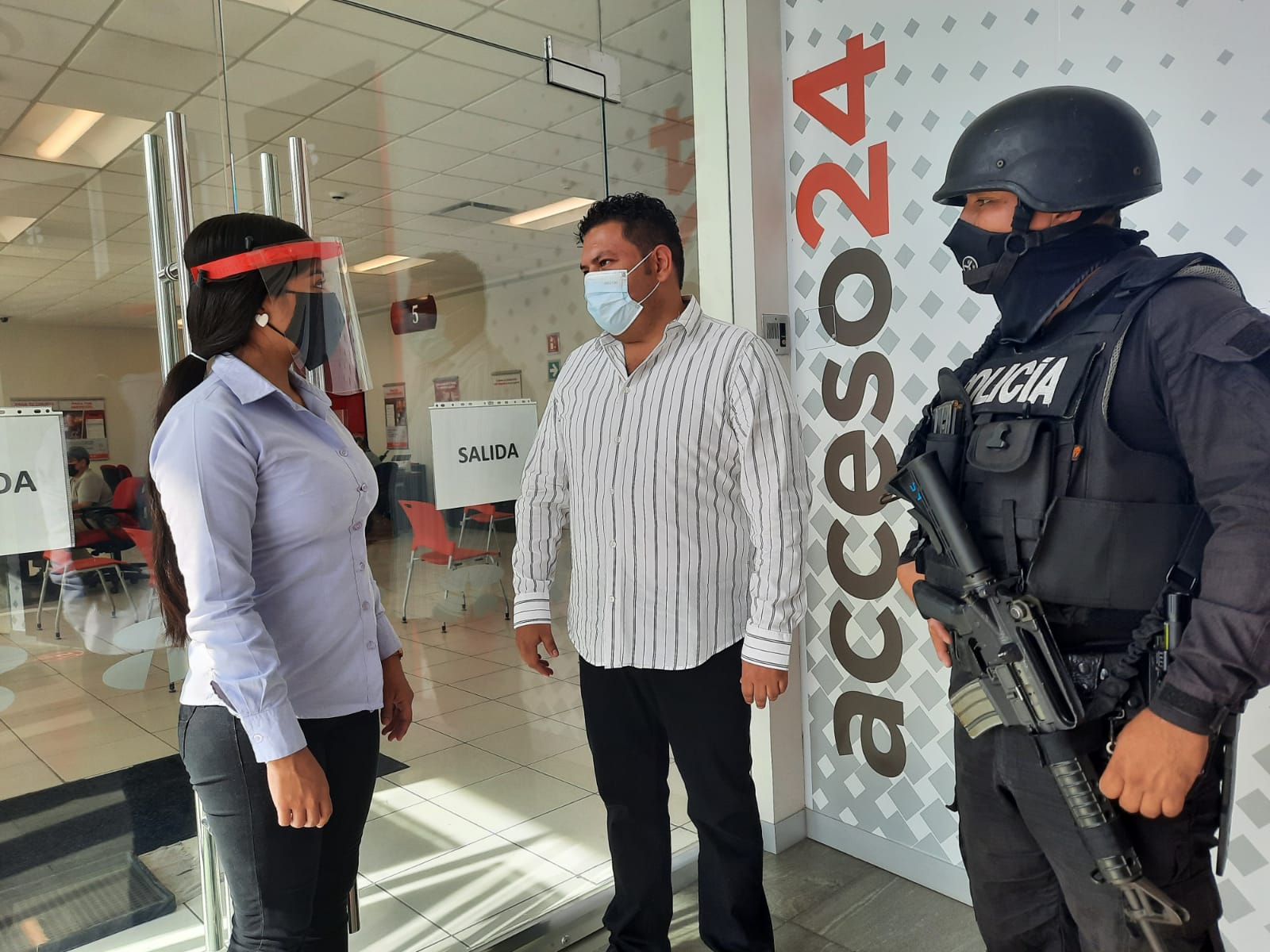 Como parte del operativo de Navidad y siguiendo las instrucciones de la Secretaria de Seguridad Pública del Estado, Marcela Muñoz Martínez, esta mañana se reforzó la presencia de los elementos de la Policía Estatal Preventiva (PEP), en las instituciones bancarias de la ciudad con el objetivo que los ciudadanos puedan acudir a realizar sus trámites con mayor seguridad.