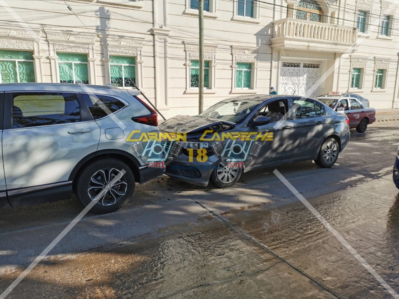 Los hechos ocurrieron alrededor de las 9:15 horas, cuándo sobre la avenida puerto de Progreso por calle malinche límites de la Colonia volcanes, el conductor de un vehículo particular de la marca Dodge neón, con matrícula de circulación DJX-27-82 del estado de Campeche que circulaba presuntamente a exceso de velocidad y distraído al teléfono celular, por lo que al no guardar la distancia colisionó fuertemente contra la parte trasera de una camioneta de la marca Honda CR-V, color blanco con matrícula de circulación YRE-610-A del estado de Veracruz.