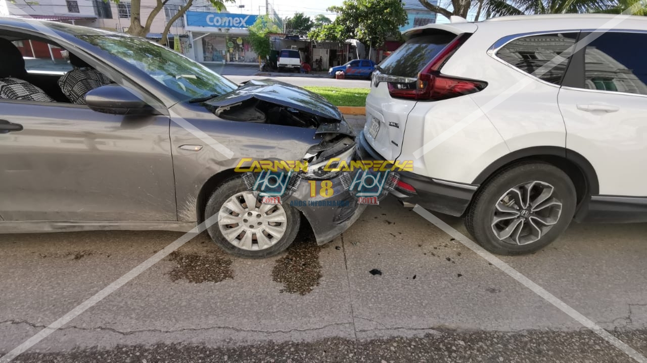 Fue sobre la avenida puerto de Progreso que el conductor de un vehículo particular no guardó su distancia y terminó colisionando fuertemente por alcance contra una camioneta y su vehículo quedó en pérdida total.