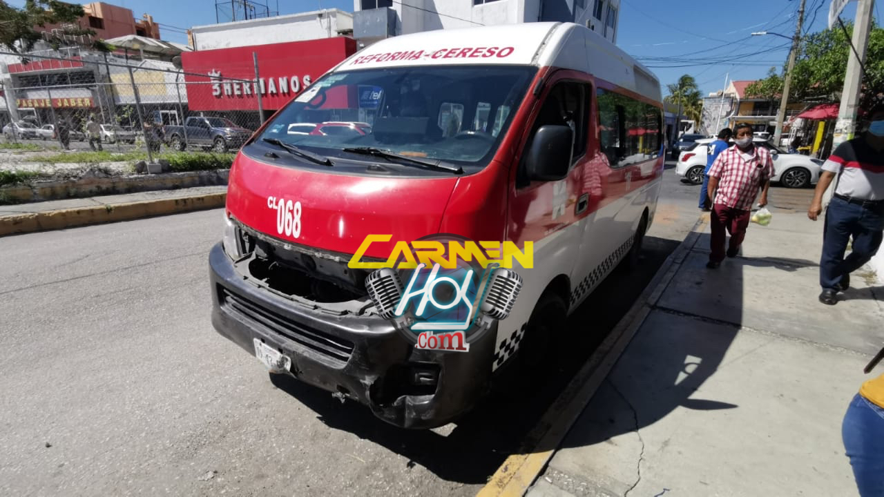 Mientras que el chófer del taxi Nissan Tsuru, con número económico 2302 y matrícula de circulación 32-79-BFC del estado de Campeche y afiliado al Sindicato Único de Trabajadores del Volante SUTV, transitaba en la calle 35, pero venía descuidado y en forma temeraria cruzó la calle 22 ocasionando el impacto al cerrarle el paso a la combi colectiva de transporte de pasajeros.