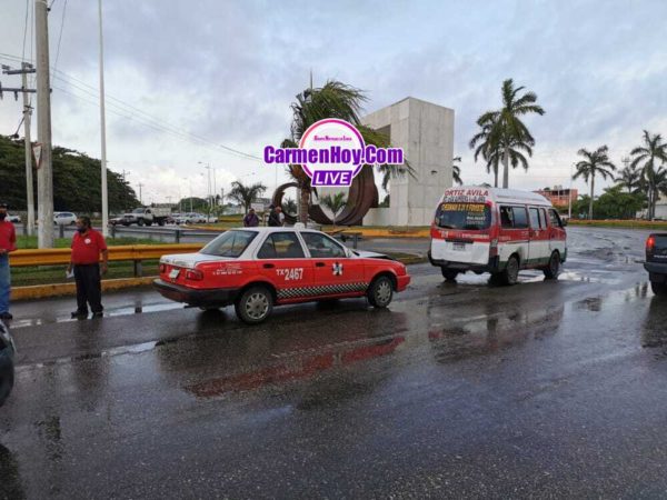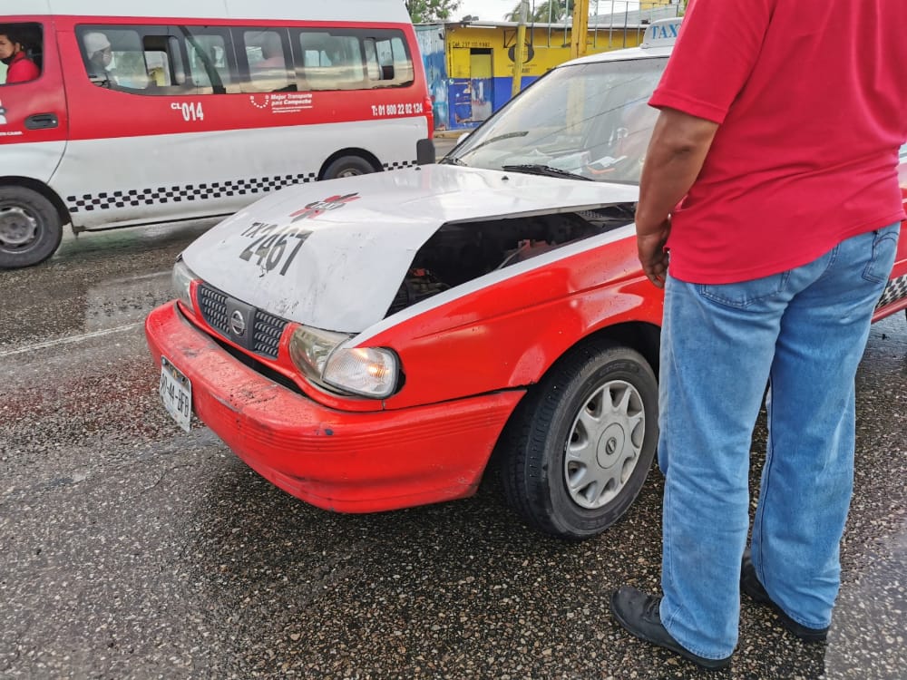 El cafre al volante de un vehículo tipo Nissan Tsuru taxi con número económico 2467 y matrícula de circulación 90-44-BFB con registró en el Estado de Campeche se desplazaba a altas velocidades sin importarle el pavimento mojado motivo por el cual no logró frenar a tiempo y se proyecto por alcance contra la combi.