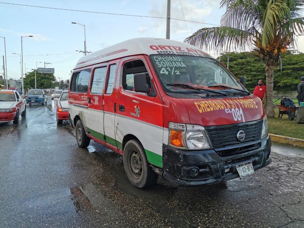 El aparatoso choque ocurrió en punto de las 8:15, el chofer de la combi tipo Nissan van con matrícula de circulación 71-03-BFB con registro en el Estado de Campeche de la ruta Ortíz Ávila circulaba sobre la avenida isla de tris pero a escasos metros de incorporarse a la glorieta del chechén.