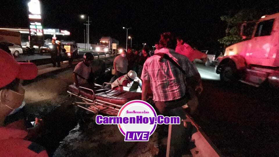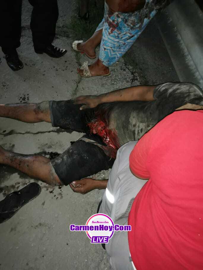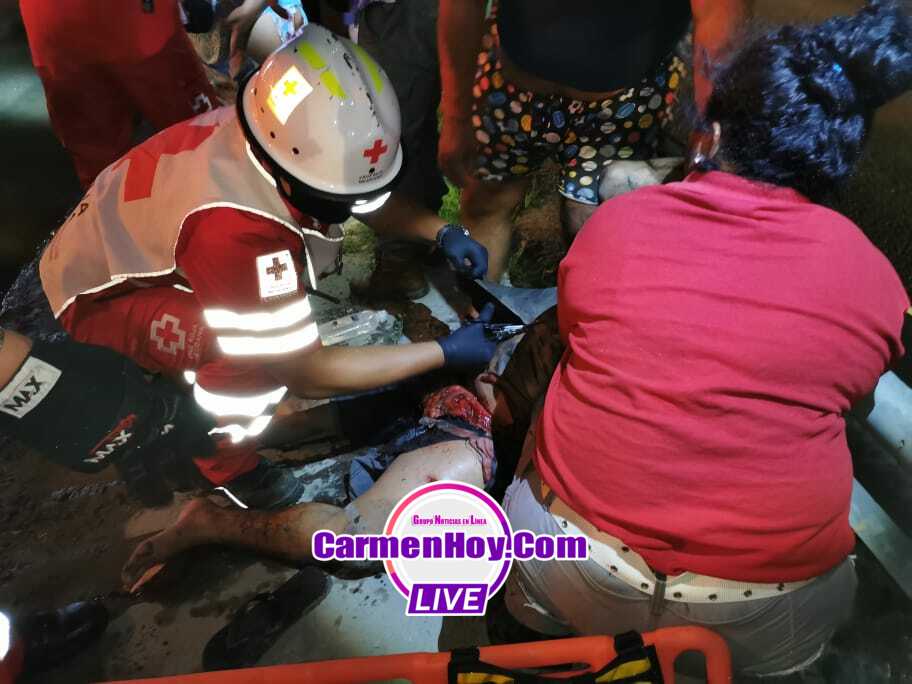 Mientras que la mujer acompañante con un pedazo de piel arrancado de su entre pierna izquierda y múltiples heridas lacerantes en brazos, manos y piernas, el hombre quien resultó con la peor parque, agonizaba de dolor mientras era atendido por técnicos en urgencia de la Cruz roja mexicana zona Carmen, quienes acudieron minutos después del accidente.