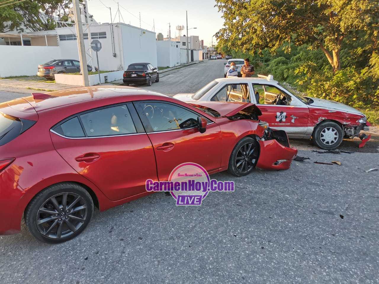 Se registró un fuerte accidente de tránsito en calles del fraccionamiento Malibrán, dejó como saldo dos vehículos con daños de mayor cuantía y dos mujeres lesionadas, las cuales fueron trasladadas al Hospital General de Carmen para su atención médica.