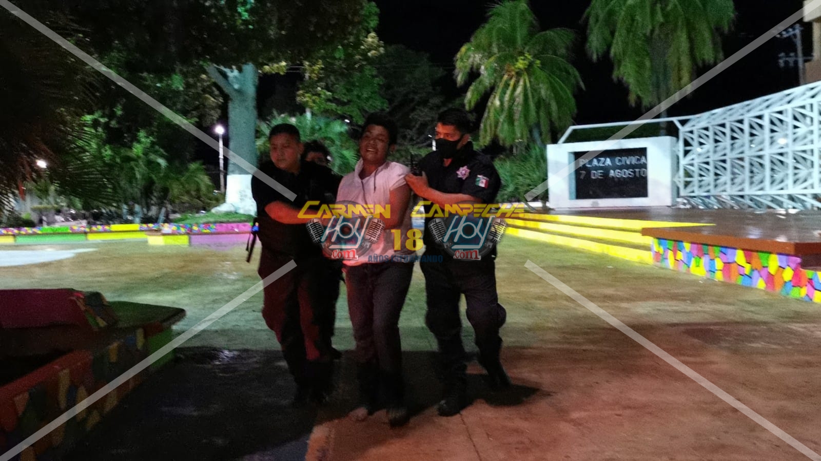 Mismo que segundos más tarde se levantó, y comenzó a seguir a la joven por toda la calle 22, la mujer al ver un par de policías en la explanada del palacio municipal los abordo, Pero antes de que cruzara palabra con los elementos El joven llegó por atrás y la abrazó como si nada ocurriera.