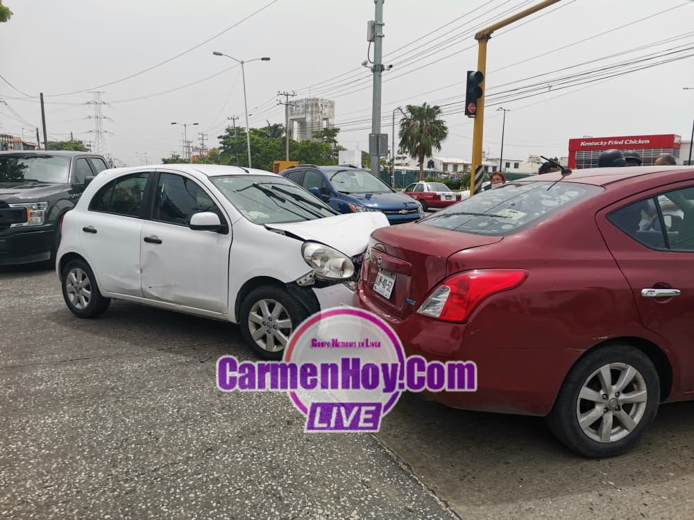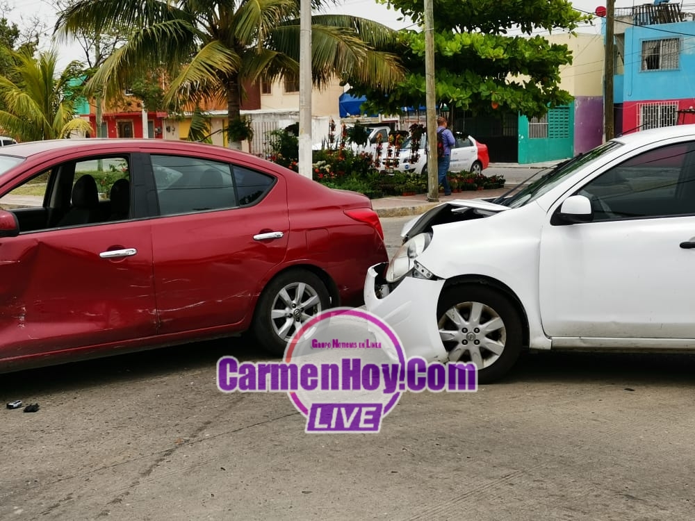 El aparatoso accidente se registró cuando la conductora y presuntamente responsable de un vehículo tipo Nissan march color blanco con matrícula de circulación DJZ-21-23 con registro en el Estado de Campeche cuya conductora circulaba sobre la avenida isla de Tris en dirección Asia el cuatro y medio.