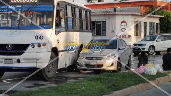 El accidente se registró sobre la avenida Juárez esquina con calle 61-A de la.l colonia Morelos, lugar donde el chofer del camión de la marca Mercedes Benz, color blanco, marcado con el número económico 14 y matrícula de circulación 203-302-B de Campeche se desplazaba sobre su ruta en la calle 61-A pero al desembocar a la avenida Juárez, la cual lleva preferencia, invadió el carril de circulación izquierdo, esto generó que chocara contra el costado derecho de un automóvil Dodge Attitude, color plata con matrícula de circulación DKD-65-56 del estado de Campeche que circulaba en aparente preferencia.