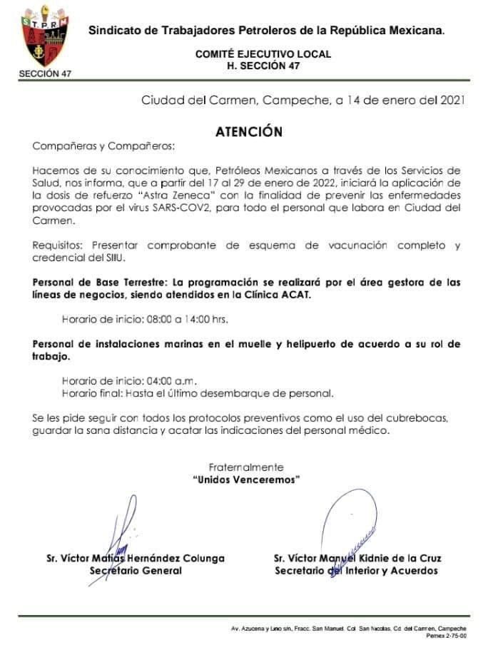 Información importante para los trabajadores Petroleros del Sindicato Petrolero Sección 47.