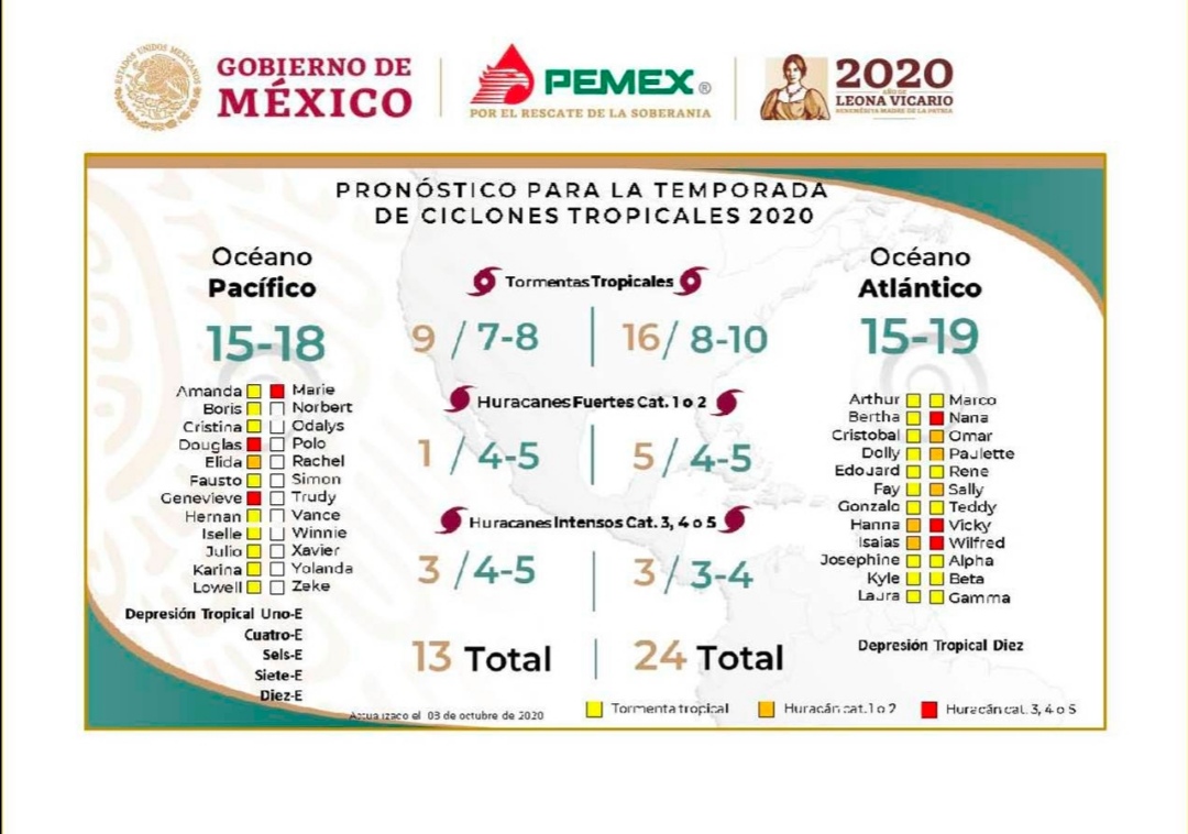 En la primera reunión informativa, se reiteró la recomendación a todo el personal de PEMEX sobre considerar lo establecido en la “Guía Operativa para situaciones de Riesgo ante Condiciones Meteorológicas Adversas”, para minimizar los riesgos derivados de este fenómeno tropical. Hasta el momento no se ha evacuado a ningún trabajador.