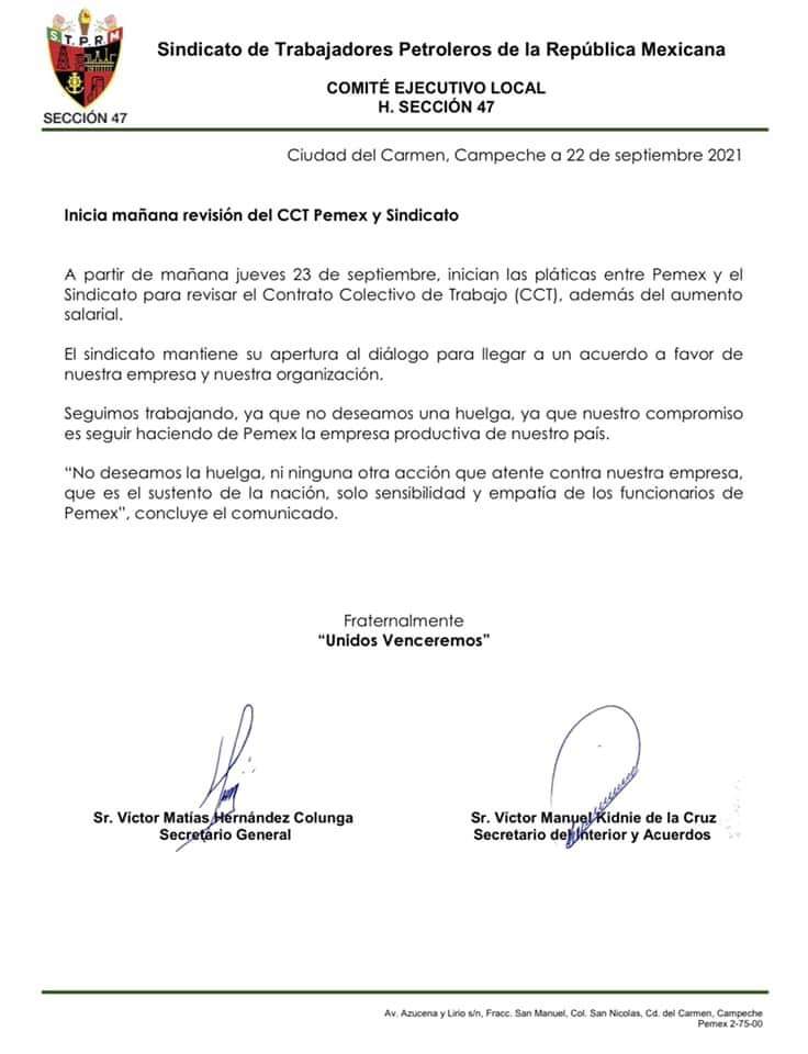 Inicia mañana la Revisión del CCT entre Pemex y el Sindicato.