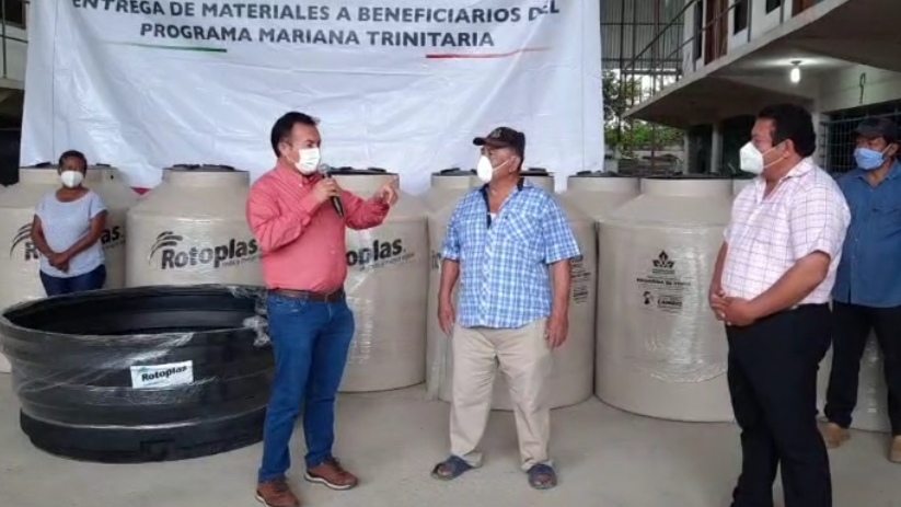 Entrega de tinacos y bebederos a pobladores de la región de Aguacatal.